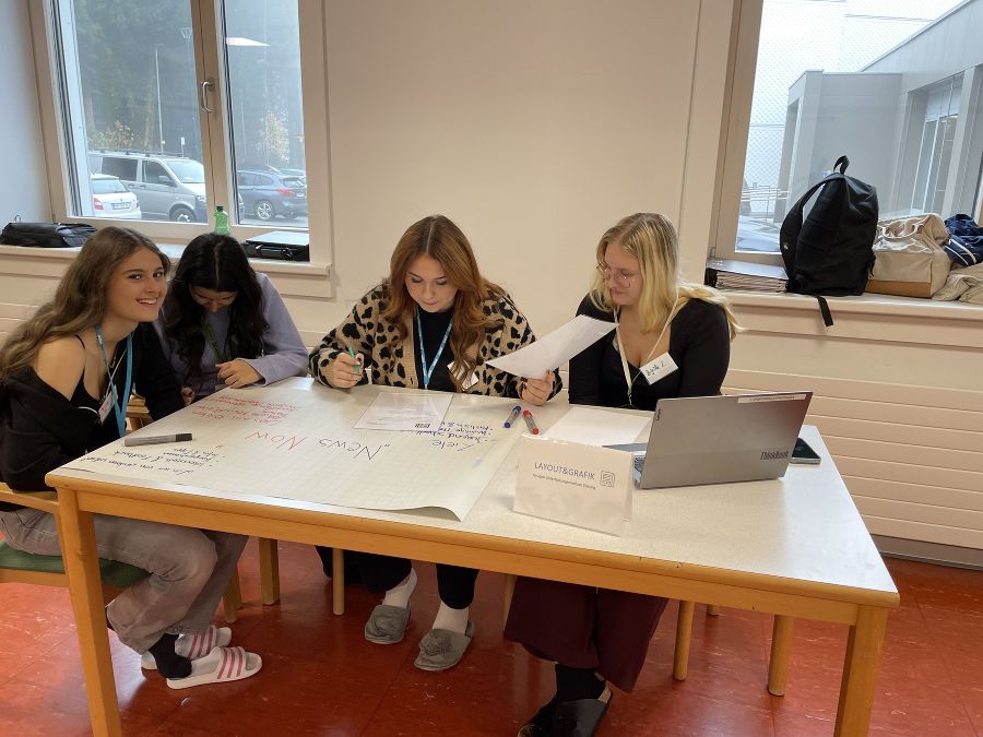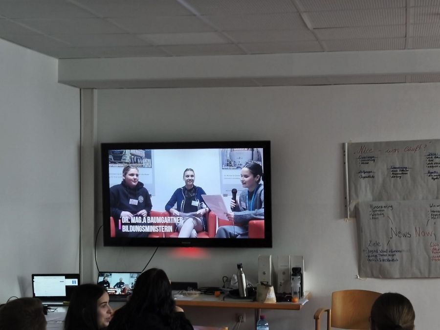 Im Rahmen der Medienwerkstatt schlüpften die SchülerInnen in verschiedene Rollen und wurden selbst aktiv. Als Produzentinnen und Produzenten für TV, Print oder Soziale Medien erlebten sie, was es bedeutet, eine Nachrichtensendung im öffentlich-rechtlichen Fernsehen zu produzieren, wie eine Zeitung entscheidet, welche Meldung auf die Titelseite kommt, und an welche Regeln sich Soziale Medien halten müssen.
