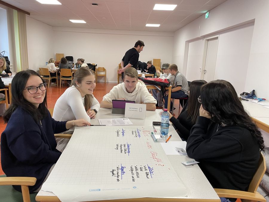 Am 6. November 2025 nahm die Klasse 2bVAAS am Projekt „Mitmischen im Landhaus" teil. Der Workshop wurde erstmals direkt bei uns an der Schule durchgeführt.