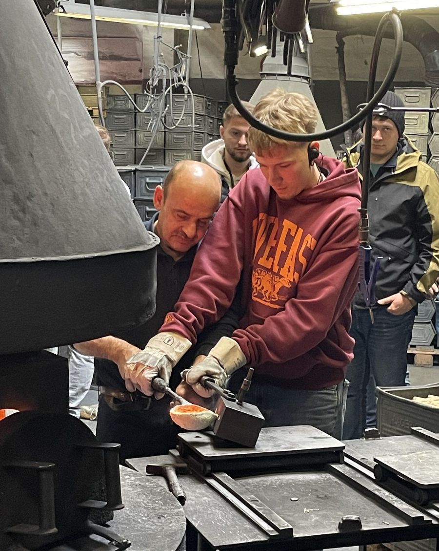 Die Schüler sahen den Ablauf der Produktion von Heizungsarmaturen vom Anfang bis zum fertigen Produkt und durften in der Gießerei selbst einen Messingguss herstellen.