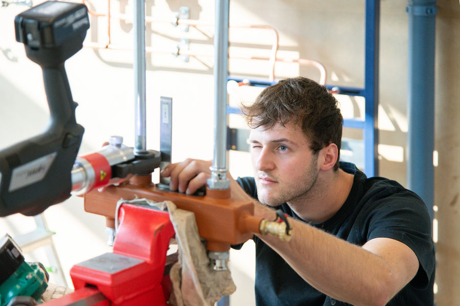 Innerhalb von 13 Stunden, verteilt auf zwei Wettbewerbstage, mussten wir eine Installationswand errichten. Dabei waren Maßgenauigkeit, eine perfekte Arbeitstechnik, Dichtheit und Schnelligkeit gefragt. Die Anforderungen waren hoch und verlangten volle Konzentration.